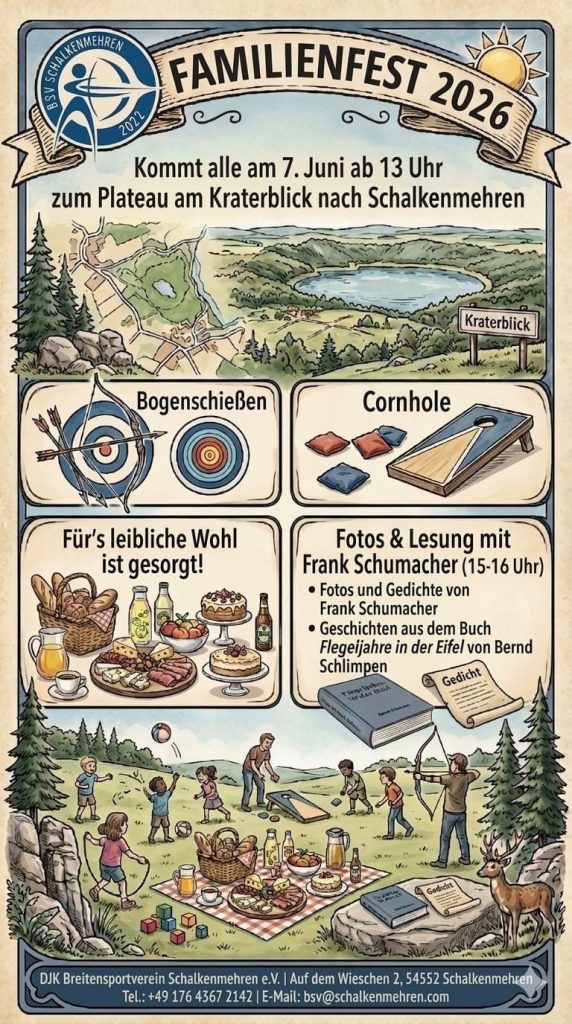 Familienfest des Breitensportvereins Schalkenmehren, am Sonntag, dem 07. Juni ab 13:00 Uhr